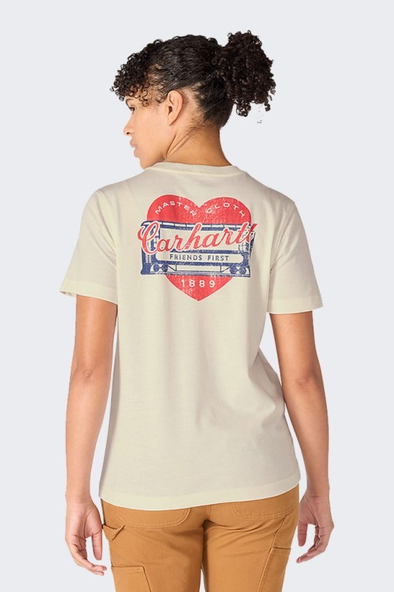 Lekka damska koszulka Carhartt Irvine Heritage to absolutny klasyk. Tym razem w wersji Heritage. Wykonana z lekkiej tkaniny o stosunkowo nie dużej gramaturze idealnie sprawdzi się w najgorętsze dni. Krótki korpus koszulki sprawiają, że jest odpowiednio komfortowa i przewiewna. Koszulka wyróżnia się limitowanym, małym logiem na przodzie oraz duża grafiką na plecach logiem marki Carhartt, które podkreśla jej unikalny charakter i ekskluzywność. Najważniejsze funkcje i elementy produktu: • Materiał: 60% bawełna / 40% poliester o gramaturze 5 oz/yd 2 - 170 g/m² • Dopasowanie: Relaxed Fit • Kołnierzyk rib-knit • Na plecach duża grafika „Carhartt Heart" • Na lewej piersi kieszonka z klasycznym, limitowanym logo Carhartt • Komfortowa, płaska metka na karku