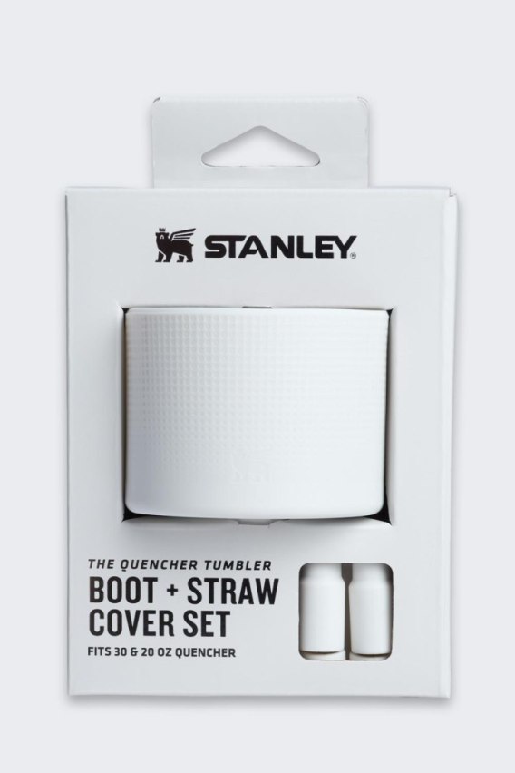 Zestaw akcesoriów silikonowych Quencher zapewnia kompleksową ochronę i podnosi funkcjonalność kubka. Osłonka Quencher Boot, dopasowana do podstawy, skutecznie amortyzuje uderzenia i minimalizuje ryzyko zarysowań, jednocześnie gwarantując pewny, cichy chwyt. Zaś nakładki na słomkę zwiększają higienę, chroniąc ustnik przed kurzem i zabrudzeniami. To praktyczne uzupełnienie dla aktywnego użytkownika kubków Stanley Quencher. Najważniejsze funkcje i elementy produktu: • Materiał: Silikon • Antypoślizgowa faktura • Osłonka kompatybilna z kubkiem Stanley Quencher 0,6 - 0,89 L • Elastyczne nakładki na słomkę z pętelką ułatwiającą mocowanie • Waga: 58 g W zestawie 1 x silikonowa osłonka podstawka Quencher Boot 2 x silikonowa nakładka na słomkę Quencher UWAGA: Nakładka na słomkę nie zapewnia szczelności kubka. Kubek należy przenosić pionowo.